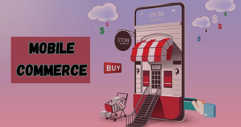 Mobile commerce means buying and selling goods or services using a smartphone or tablet instead of a computer.